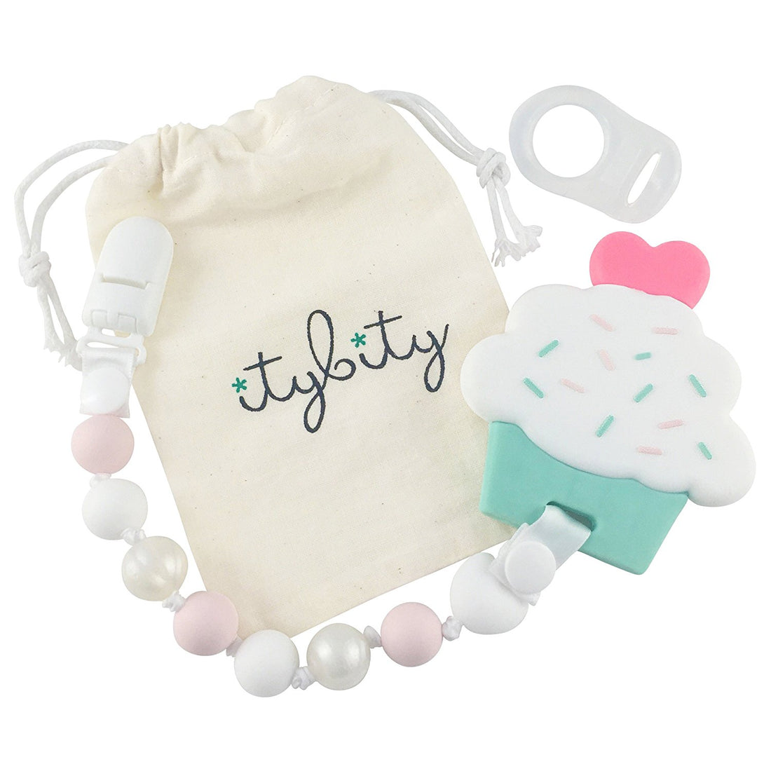 Cupcake and Pacifier Clip Teether Set (Pink, Mint)