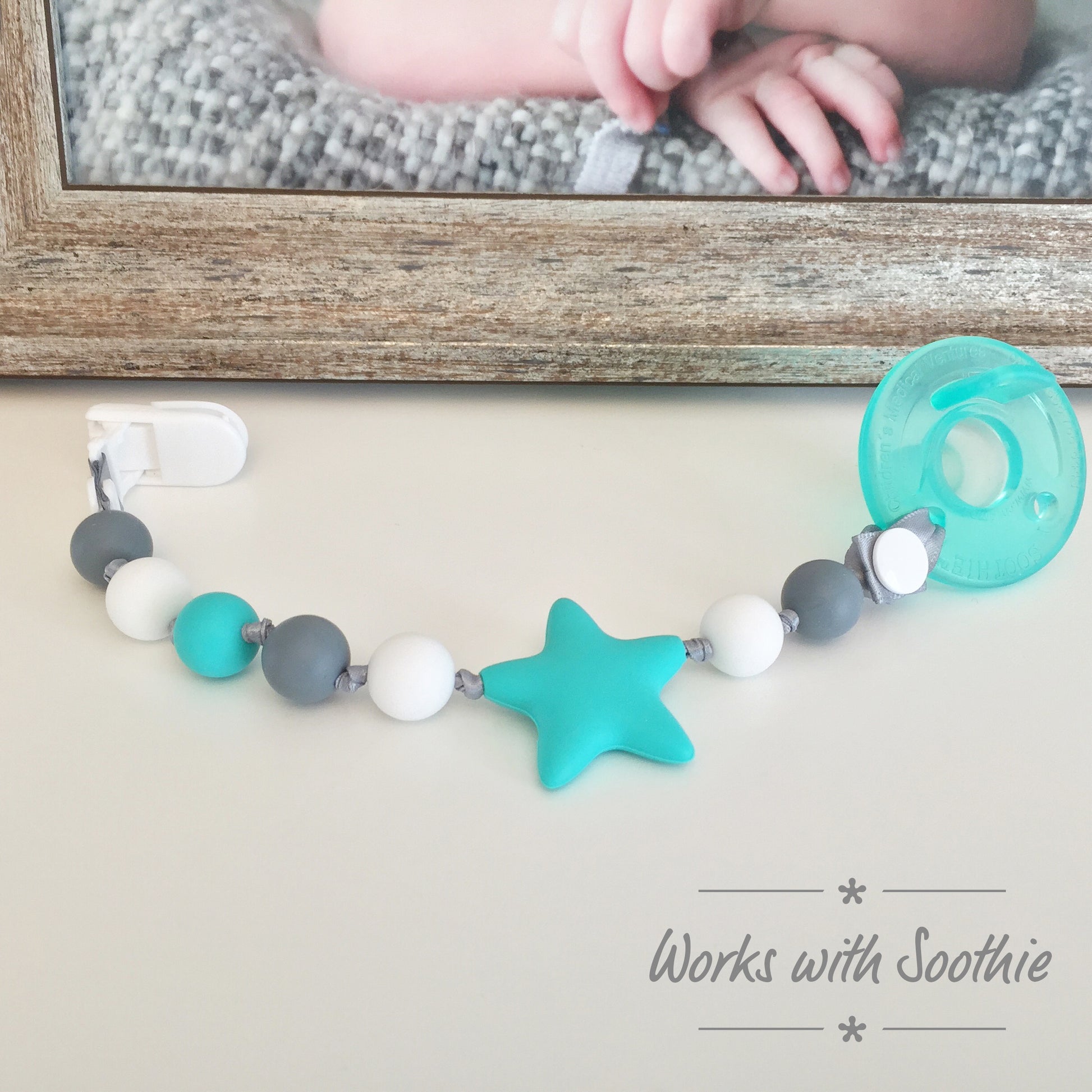 Star Dust Teether Pacifier Clips